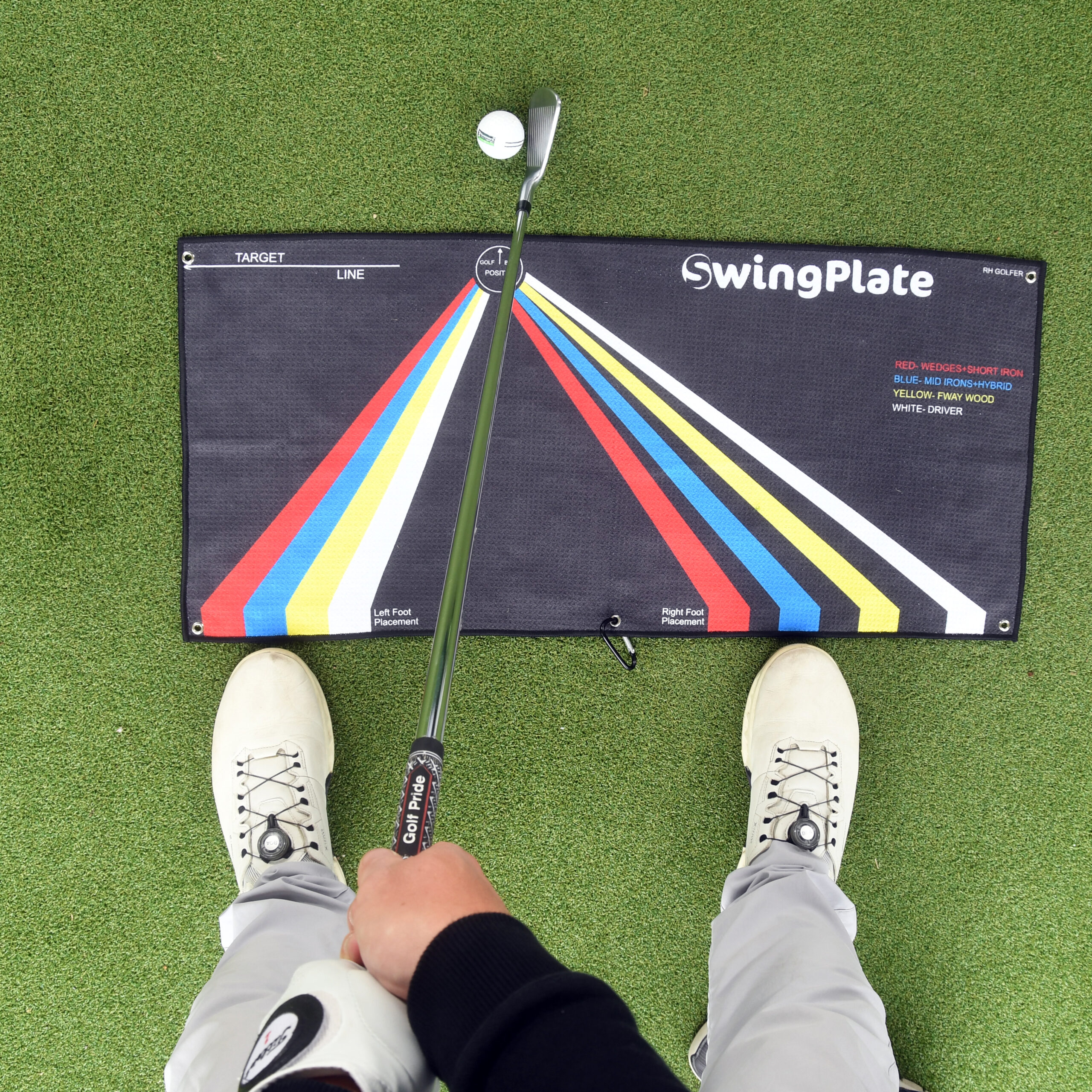 The Training Aid which quickly & simply demonstrates the setup positions for all shots and clubs – and it doubles up as a golf towel!